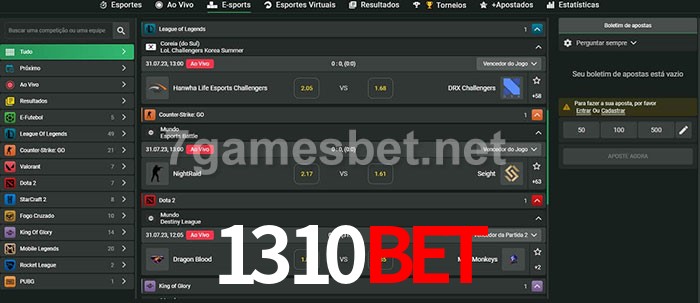 O 1310Bet oferece uma grande seleção de opções de apostas em e-sports com probabilidades competitivas